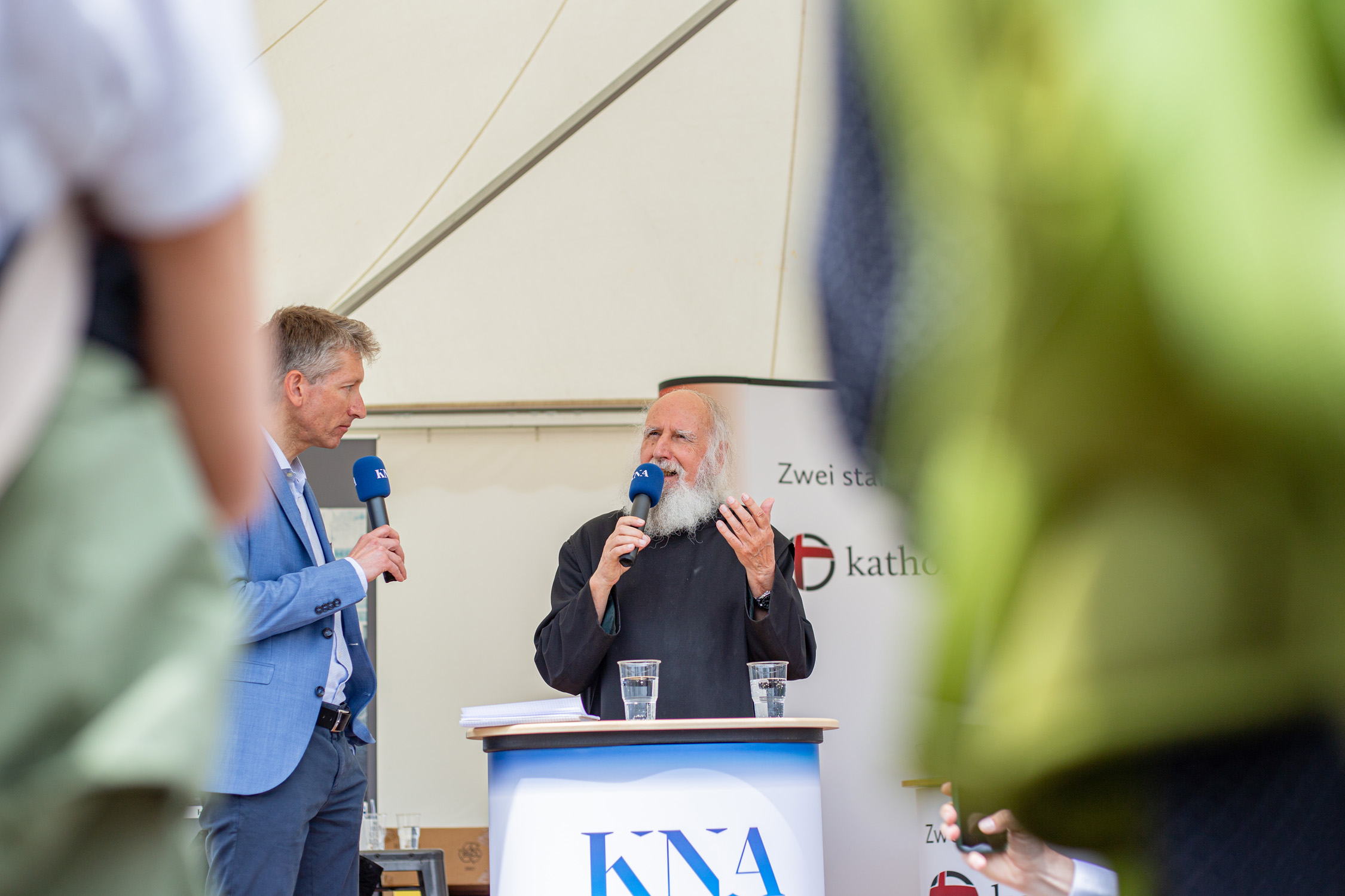 Die Abendveranstaltung in der Abteikirche Münsterschwarzach ist öffentlich - hier ergeht herzliche Einladung. Gemeinsam mit der Band Sternallee sowie Clemens Bittlinger und Johannes Matthias Roth gibt P. Anselm eine Konzertlesung. Es beginnt um 19.30 Uhr, der Eintritt ist frei.