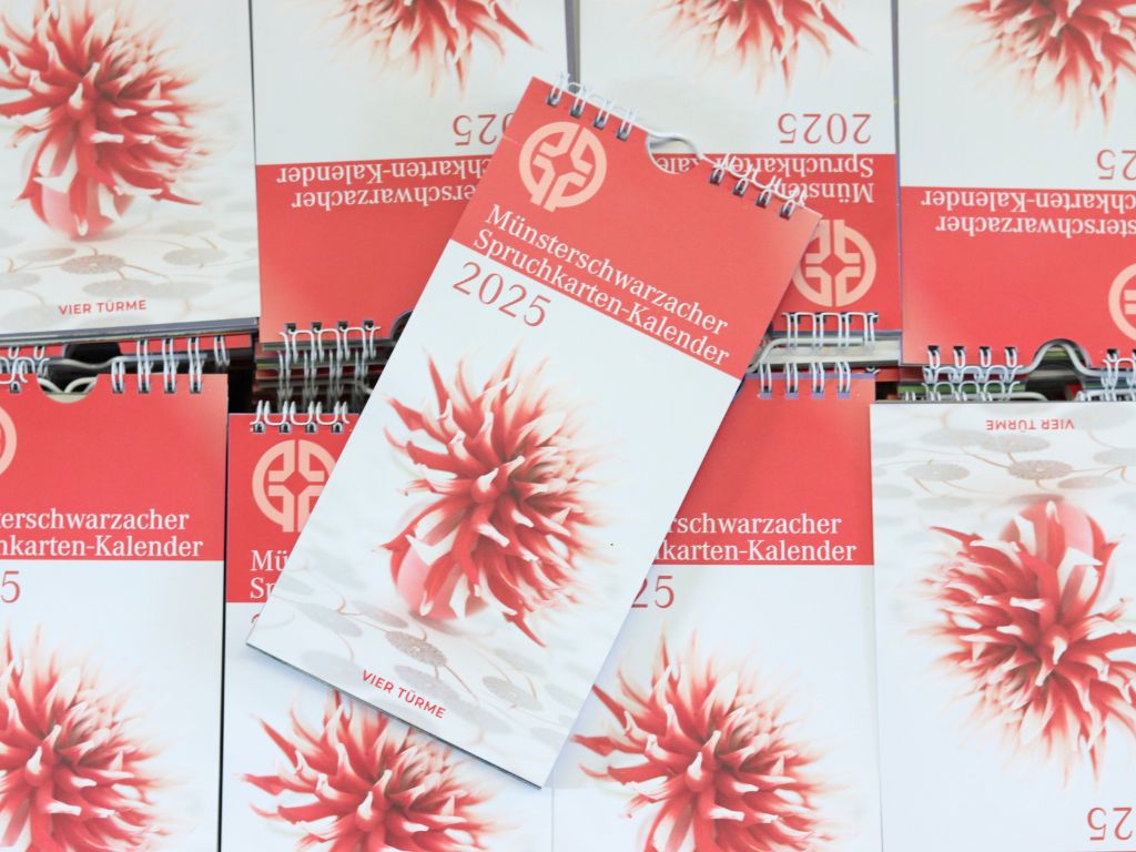 Wir starten mit einem echten Klassiker aus Münsterschwarzach. Unseren Bildkalender geben wir bereits seit 1931 heraus und war damals die Grundlage für die Gründung des Verlags der Mönche aus Münsterschwarzach. Bis heute erfreut sich der Kalender an großer Beliebtheit und wird in die ganze Welt verschickt. Auch 2025 begeistert unser Wochenkalender wieder mit Bildern aus Natur und Leben die Menschen.